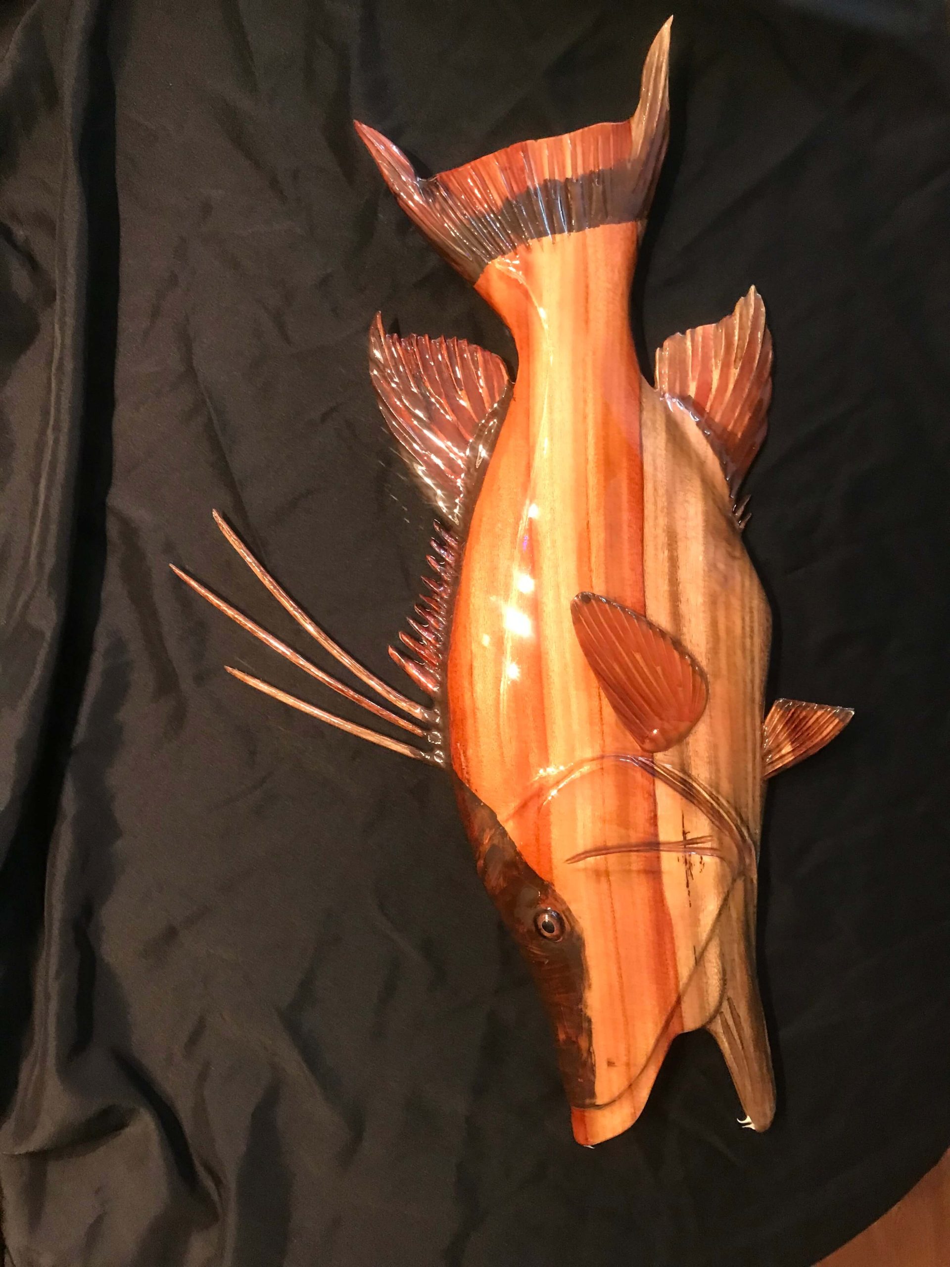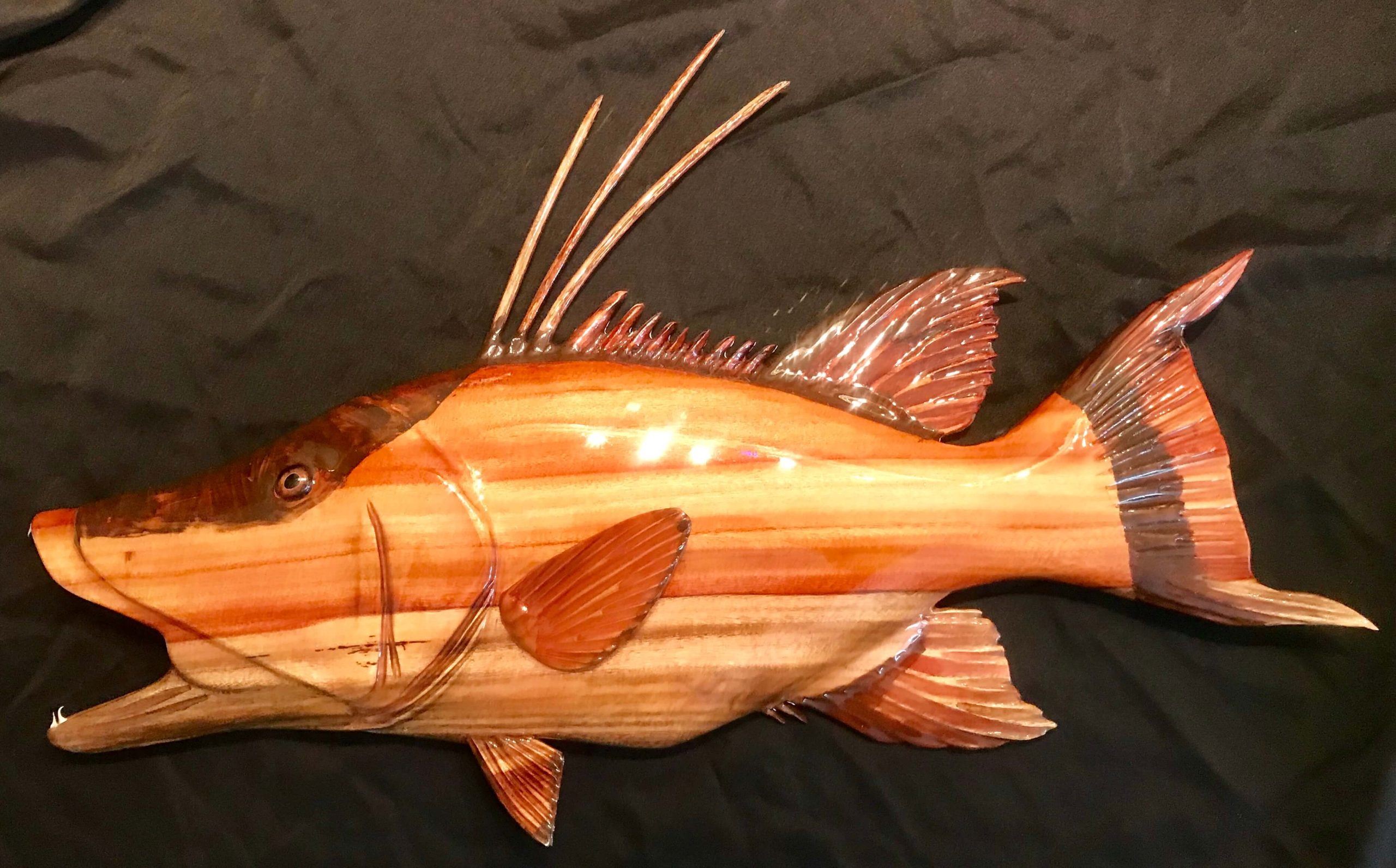 Wood Hog Fish Carving/Sculptures are one of the most difficult fine detailed fish mounts that I create due to all of the delicate spines and fin details.