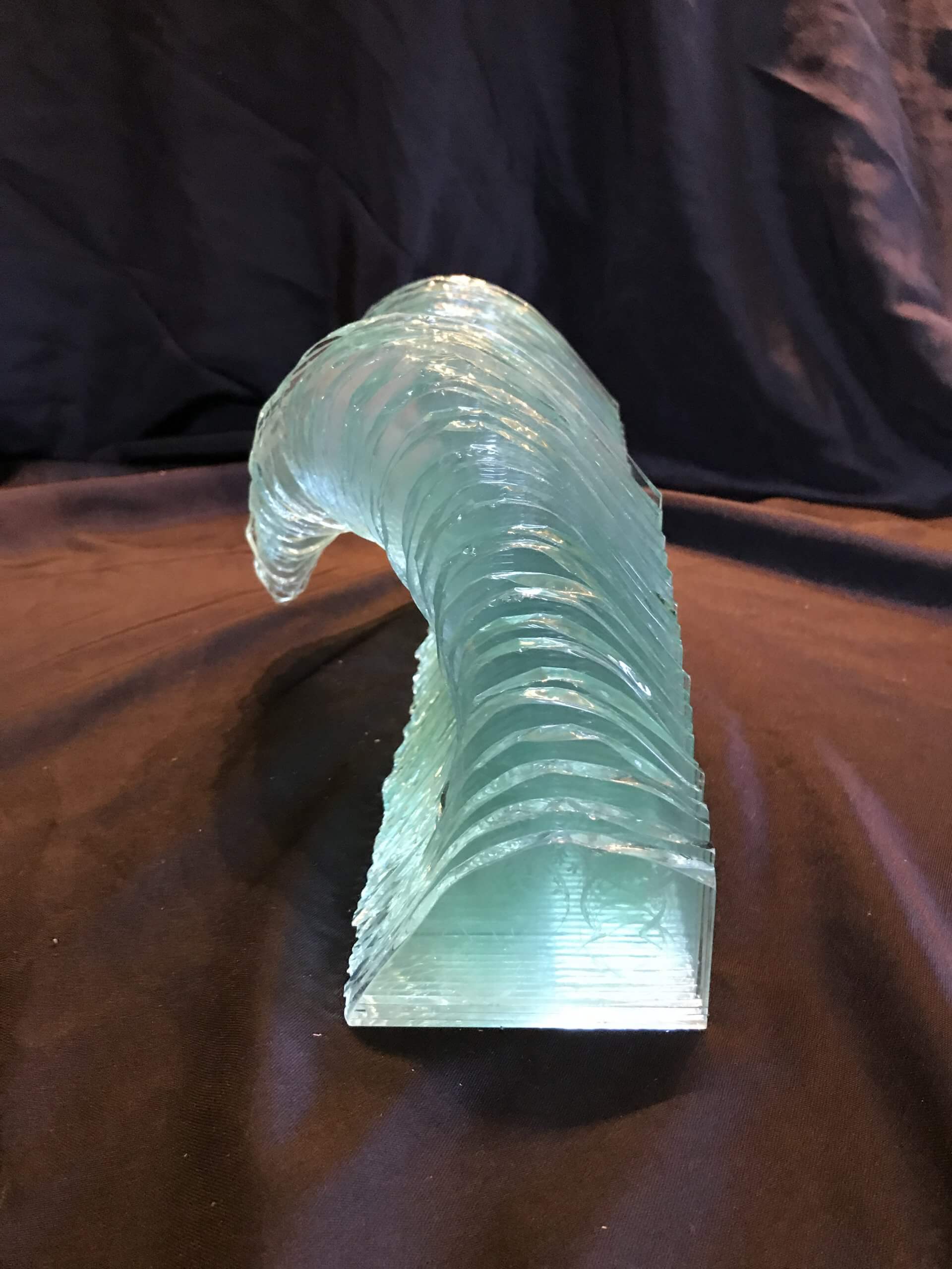 We offer this stunning and beautiful Double Break Ocean wave constructed of hand cut repurposed windshield glass.