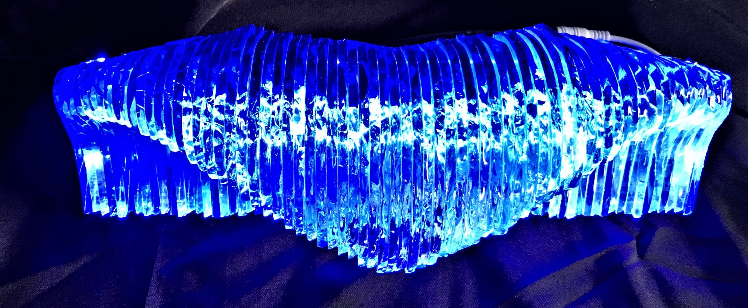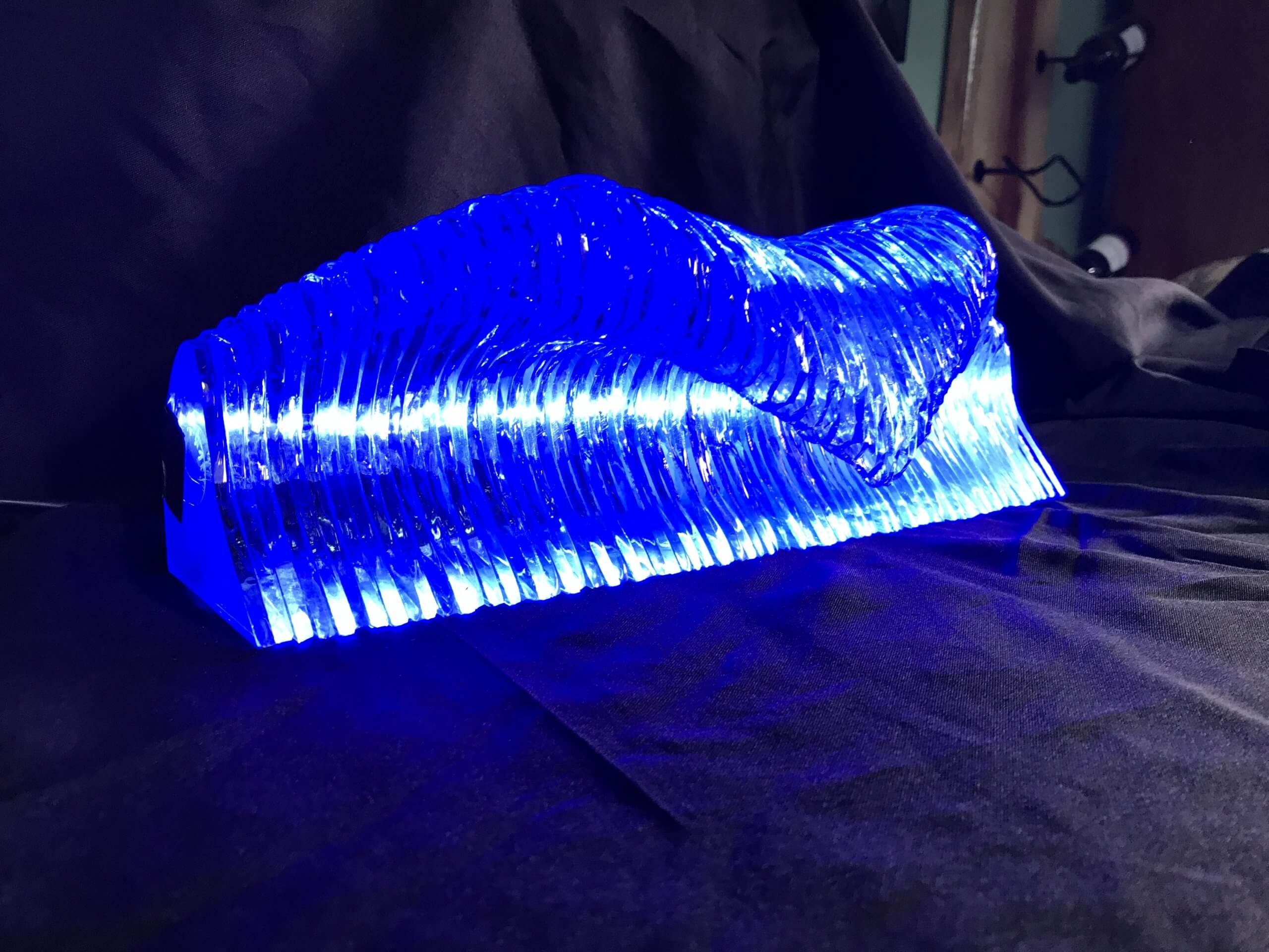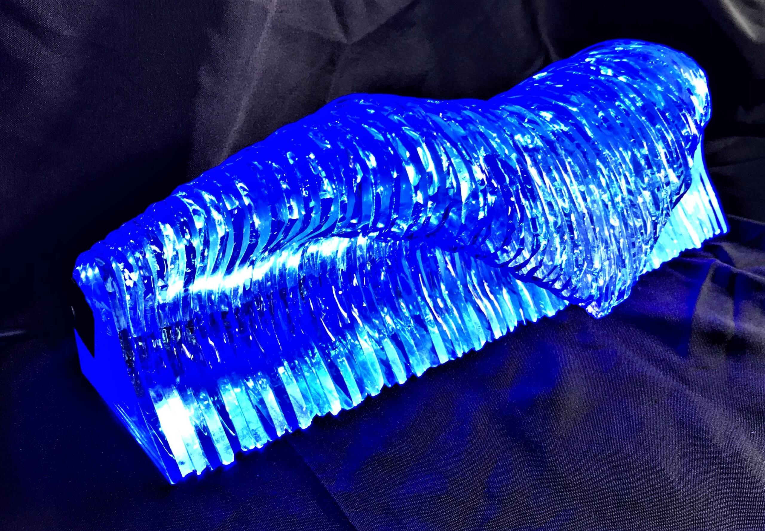 Glass Ocean Wave Tube Sculpture/w LED Blue Light